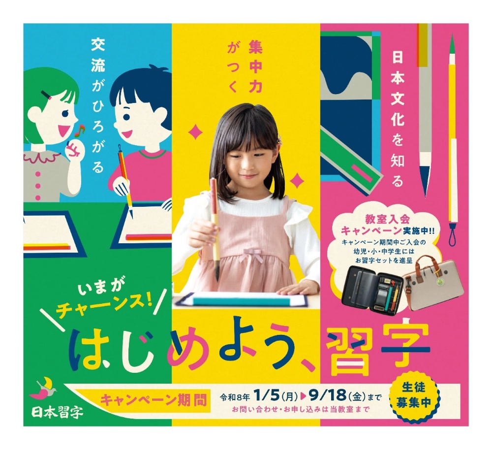 ご入会で習字セットプレゼントキャンペーン実施中です😊